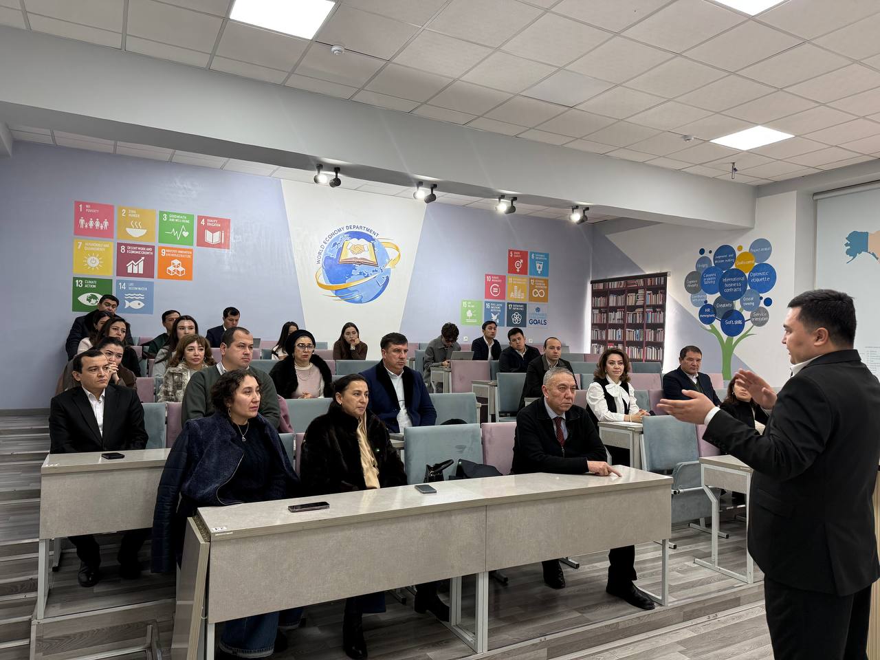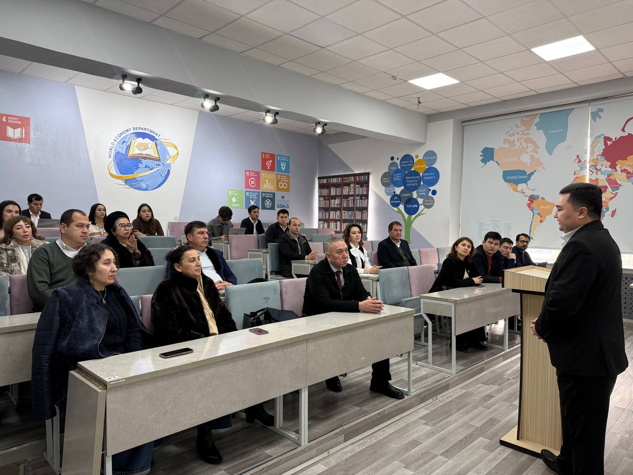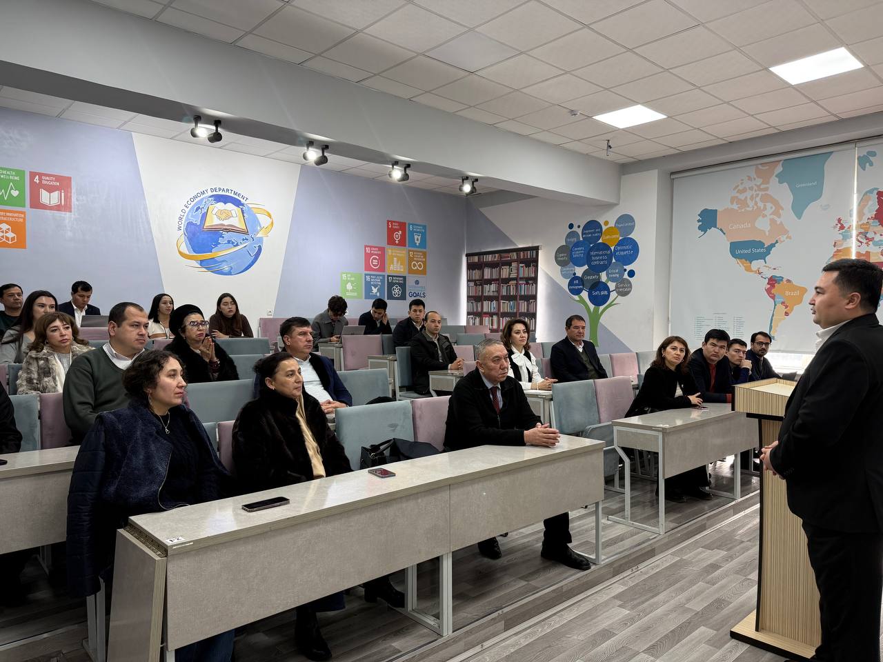 ✅ 2025-yil 24-dekabr kuni Toshkent davlat iqtisodiyot universiteti "Menejment" fakulteti "Jahon iqtisodiyoti va xalqaro iqtisodiy munosabatlar" kafedrasi va "Biznes boshqaruv" kafedrasi professor-o‘qituvchilari uchun Oʻzbekiston Respublikasi Investitsiyalar, savdo va sanoat vazirligi mutaxassisi Axmadjonov Azimjon Xasanboy o'g'li tomonidan "Oʻzbekistonda tashqi savdo siyosatida amalga oshirilayotgan islohatlar" mavzusida o‘quv-amaliy seminar-trening tashkil etildi.